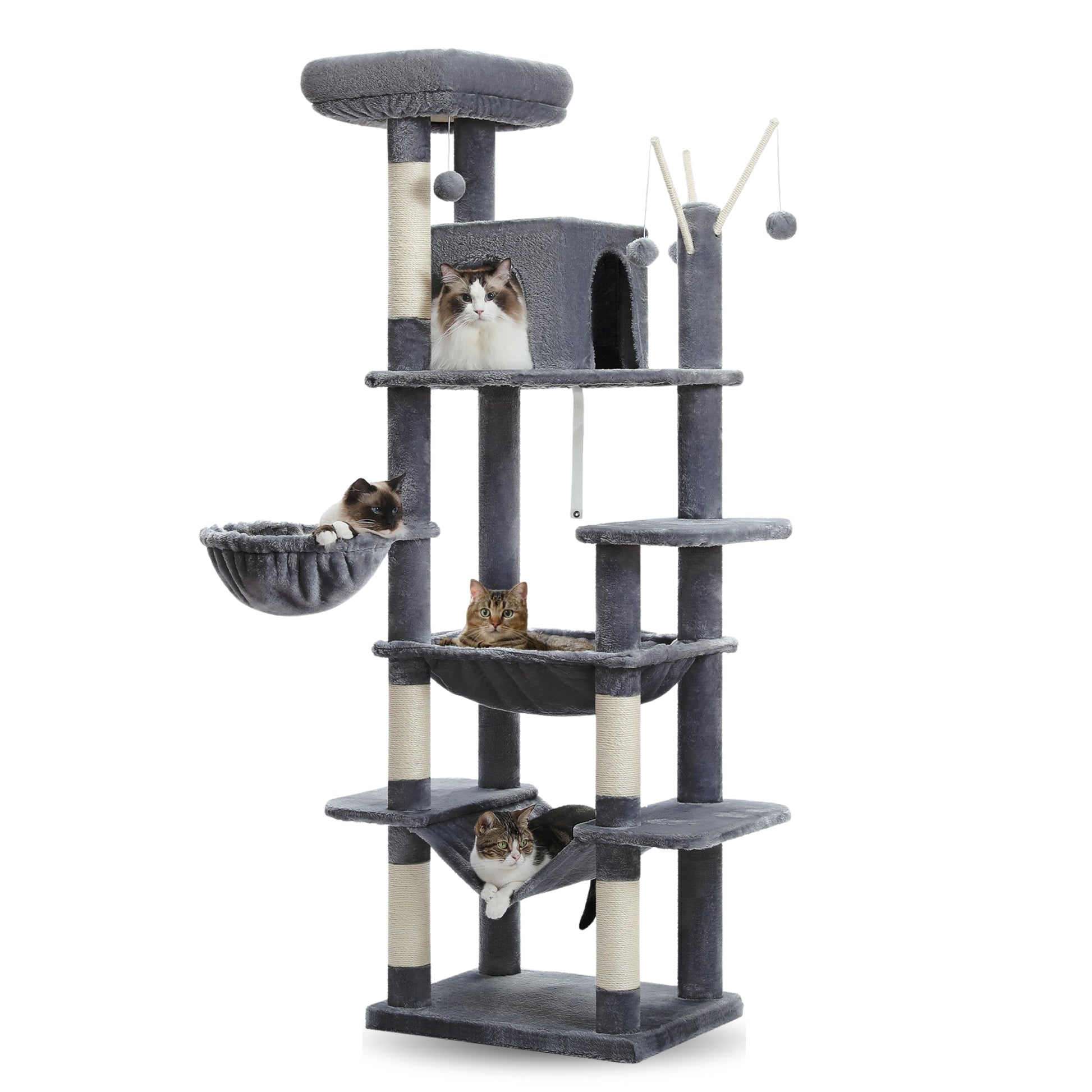 Oui, il est conçu pour accueillir jusqu’à 5 chats simultanément, chacun trouvant sa place entre la grotte, les perchoirs et les hamacs.