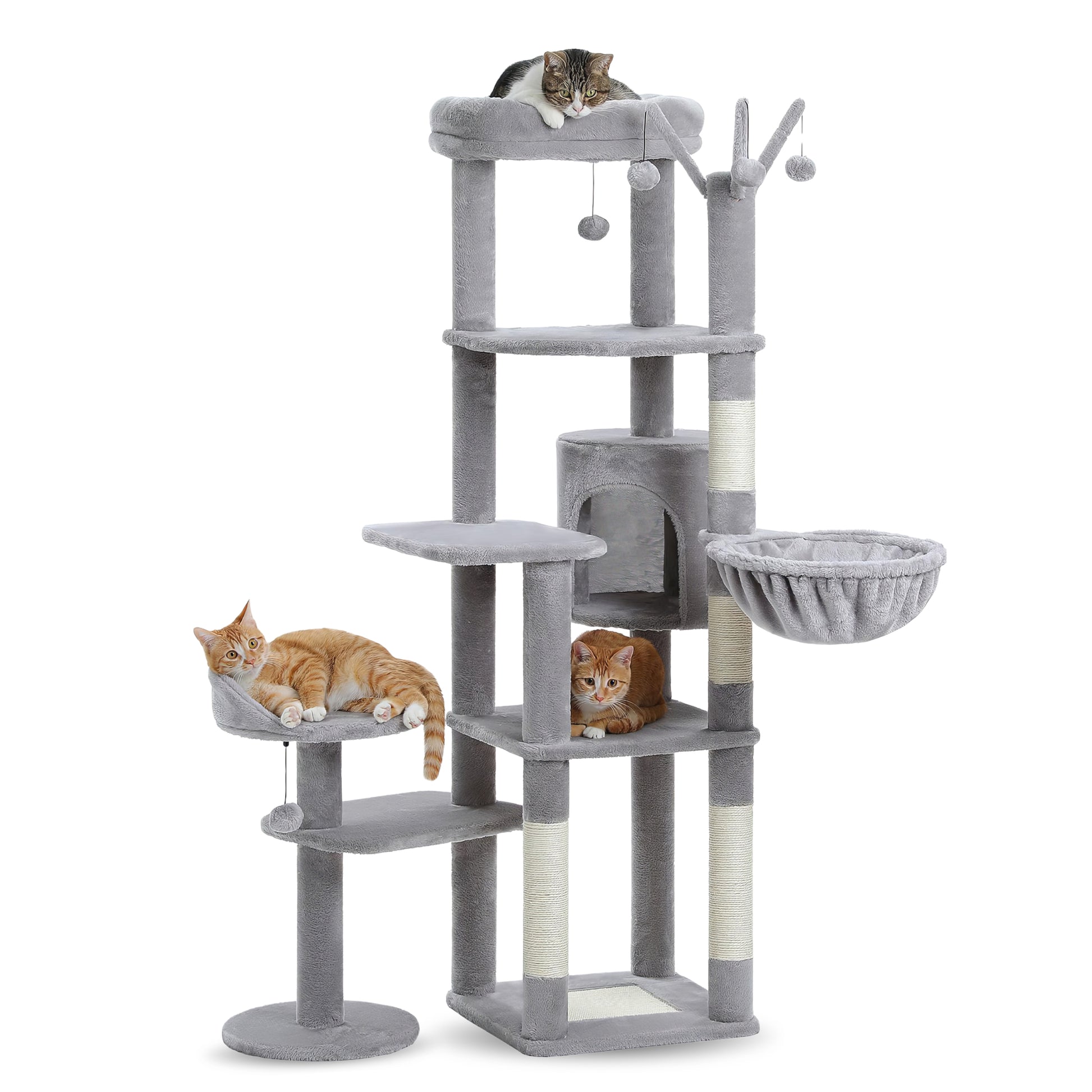 Il est prévu pour 1 à 5 chats et supporte jusqu’à 35 kg de charge totale. Les 5 niveaux permettent à chacun de trouver sa place.